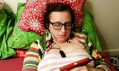 Curvy cougar with clamped nipples toys and cums hard