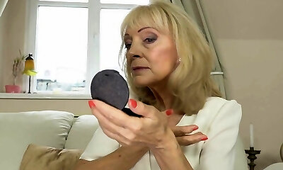 übergewichtige reife hellhaarige dame gibt gespräch und zieht sich aus