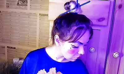 fabelhafte praller in nylon strumpfhosen, raucht und melkt auf cam