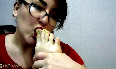 She enjoys sucking toes
