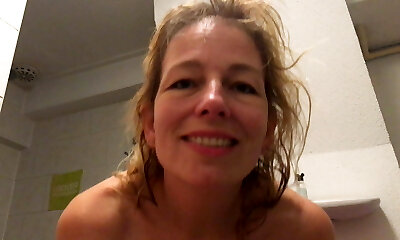 hot milf had a shower and ride my dick after. Her natural tits make me cum so swift