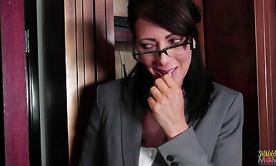 Rude redhead chief takes advantage of her enslaved lesbian employee by ramming her with a strapon