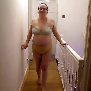 妻子带裸体展示了她巨大的牛奶罐和守车