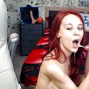 Harsh deep-throat job completing with russian young babe orgasm cumshot