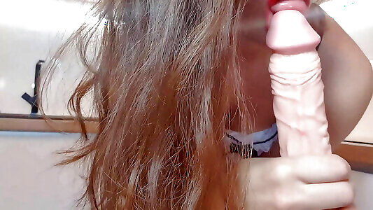 Slutty maid takes a huge pulsating oral creampie and swallows every drop