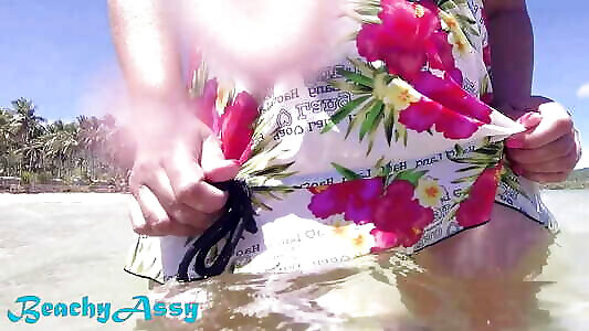 I showcase myself in a bathing suit on the beach and I get on all 4s to nail with my boss