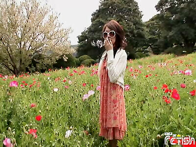 Horny Japanese mummy Yui Nishikawa with fat boobs and stockings, grabs her fresh thick penis and begins playing with it.