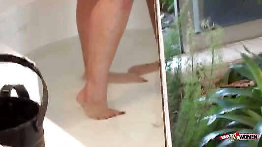 Mature honey toying in bath