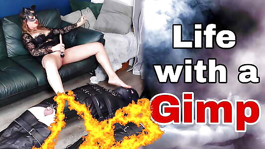 domme predominant sissy faggot tramp man roughly, entirely restricted bondage & discipline in amazon position while butt licking and smacking