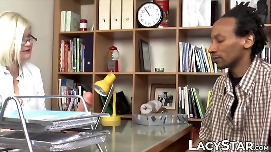 Therapist GILF with thick breasts impaled deep on firm ebony man meat
