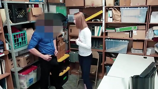 Red-haired teenie thief splattered and exploited by a mall cop