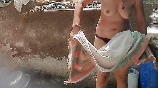 Mamaji&039;s stepdaughter was taking a bath in the open bathroom, the stepbrother saw that the girl was bathing naked.