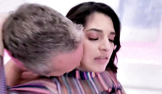 This dark haired bi-atch saduce her stepdad to plow her cock-squeezing cunt