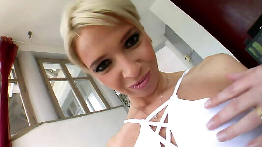 Joana Romain, European, Double Boned Blonde Cougar & Titus Steel, Mugur undergarments, high high-heeled shoes, brief hair, stellar Milf cockslut, Teas