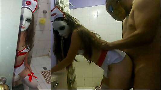 Not parent-in-law! Dad-in-law ambles in when virginal daughter-in-law is in bathroom at family costume soiree, 18yrs