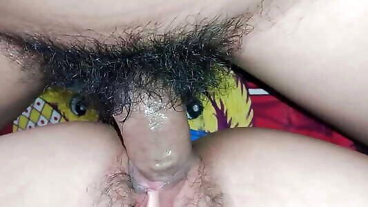 HAIRY VIRGIN using a DILDO FOR THE FIRST TIME
