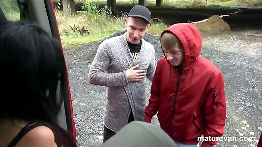 Young Fellow lure elderly Mature Grandma to Defloration Plumb on walk