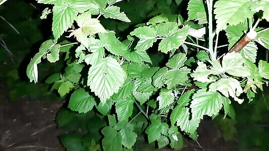 Completely naked woman in the forest - brush in the vagina