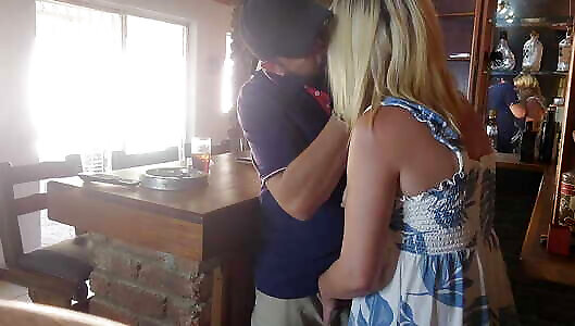Gorgeous towheaded in the kitchen is sated with a stiffy