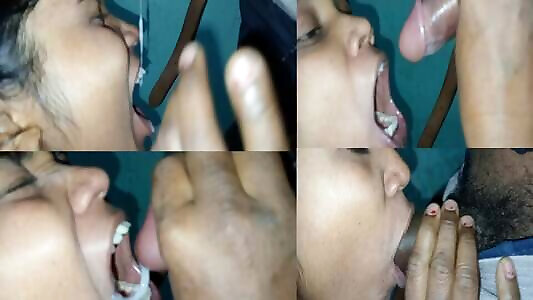 Indian hot bhabhi sucking cock, cum in mouth, delicious blowjob