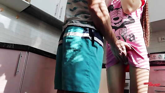 My step cousin fun with I fuck her in the kitchen