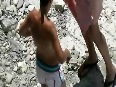 Candid 08 - Couples flirt on bare beach, fellow gets rock-hard