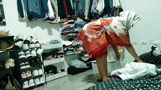 Red dressed Plump desi mom and whether aunty tipsy in missionary after deep fingerblasting, desi clitoris play, musi ki chudai