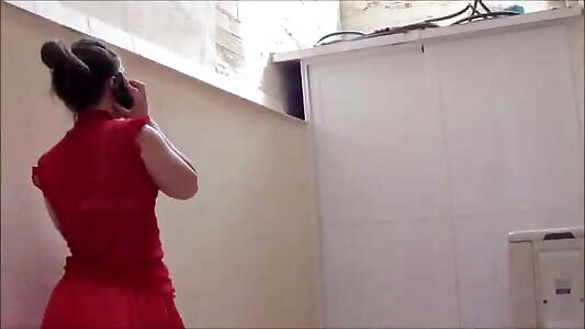 Horny in Red Dress and Panties