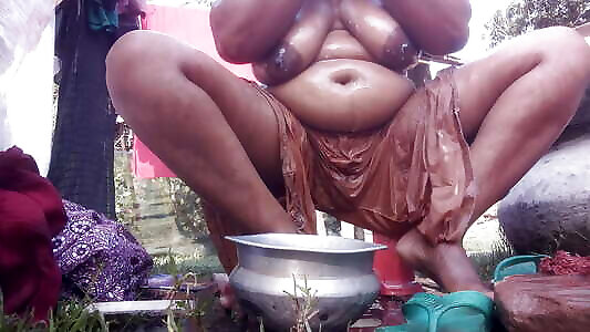 Telugu YOung aunty bathing, indian wife bath, house wife bath