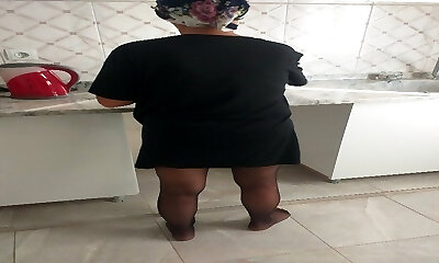 Sexy legs in nylons while my stepmom makes stuffed in the kitchen
