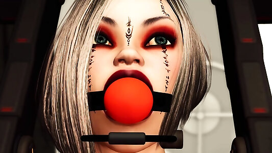 Ballgagged handcuffed chick gets banged by black hooded chick