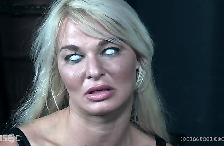 Towheaded mature slut in igh heels manhandled xxx in a restrain bondage sesh