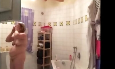 My busty and chubby wifey. A daily sequence in our bathroom.