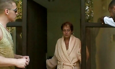 Two big-cocked fellows share hot granny neighbor