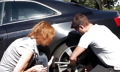 German Bootylicious Mature Mom give Young Fellow a Fuck for help