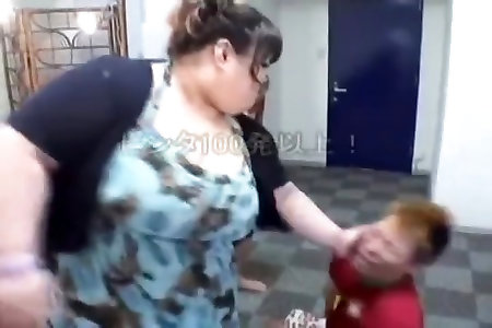 Trio chinese bbw buttdrop and faceslap thin boy
