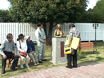 Cosplay Pornography: Public Painted Statue Plow part Four