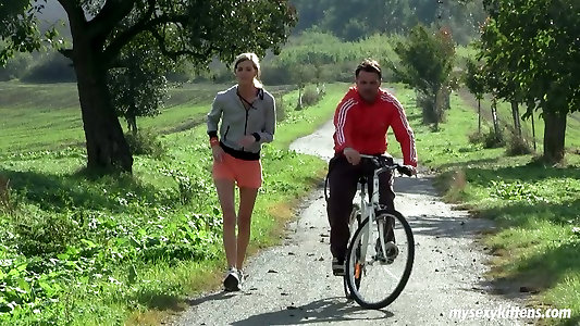 Tall platinum-blonde girl Cindy gets enticed by nasty boy