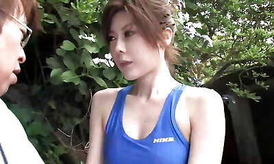 Mature brunette providing a sucky-sucky to her coach right in the gym